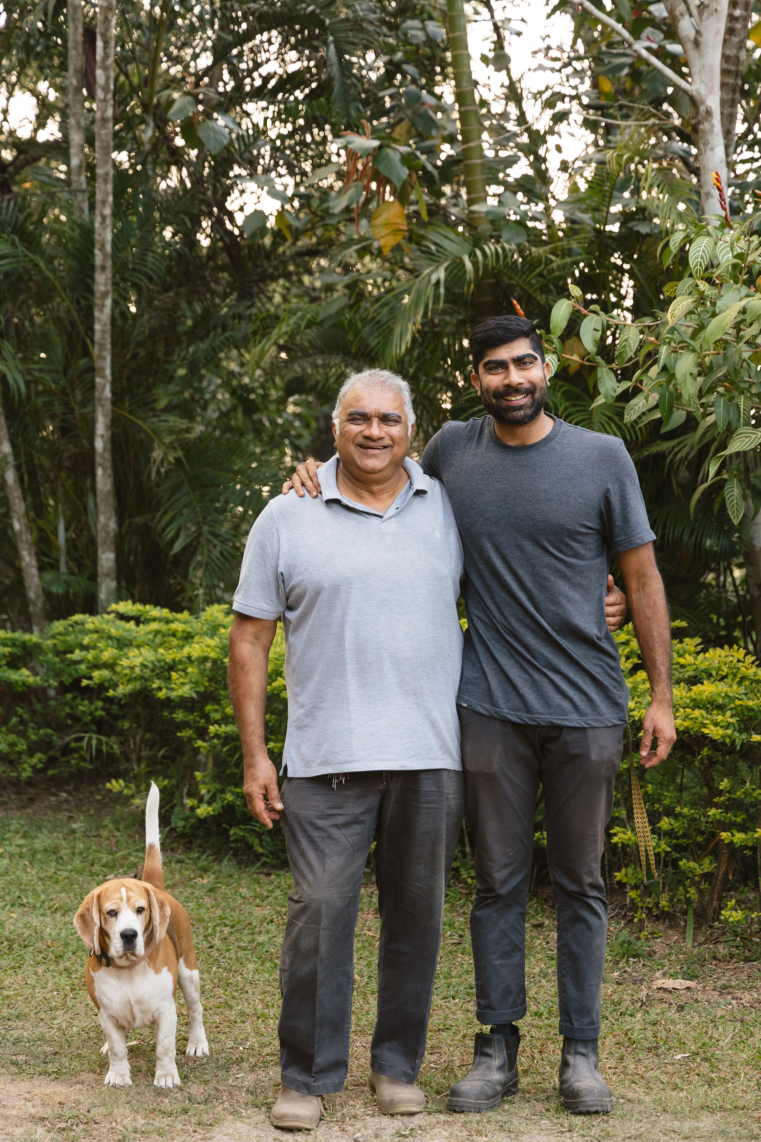 Ajoy and Pranoy Thipaiah, pictured with their trusty farm dog Kivi
